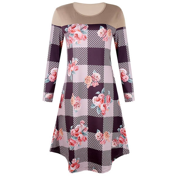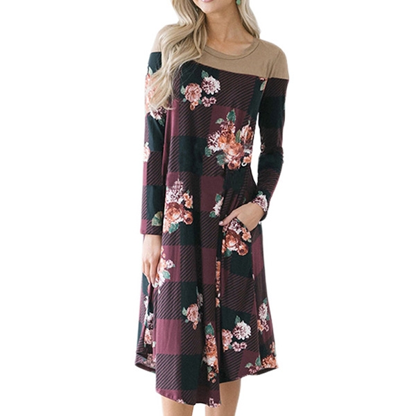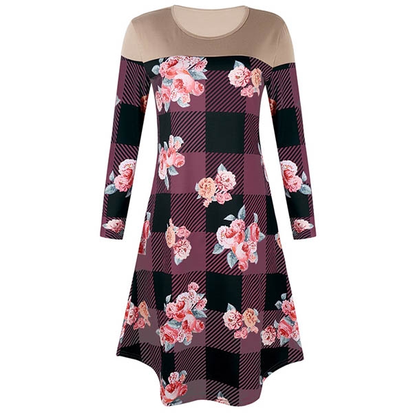 why we're loving this dress. This printed dress is finished with long sleeve,round neck and a loose silhouette
