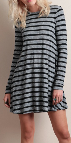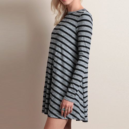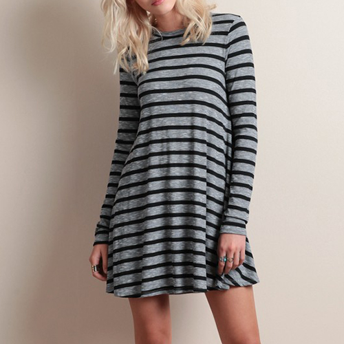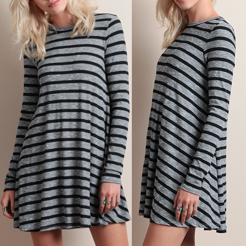 This striped dress features long sleeve,round neck and a loose silhouette,classic and stylish.