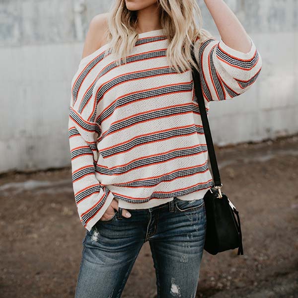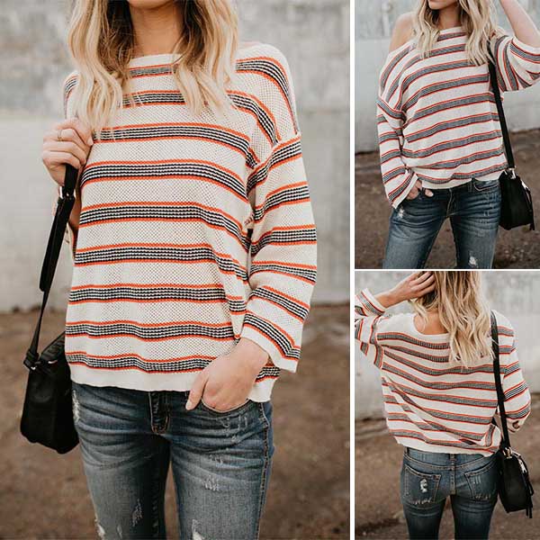 This sweater is designed with stripe element,chic and stylish. Finished with long sleeve,round neck and a