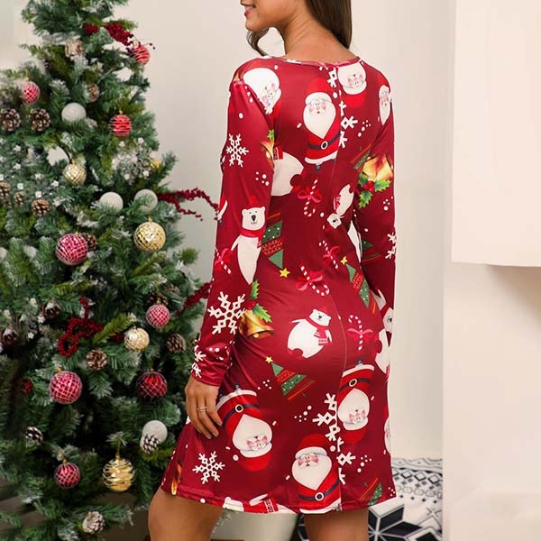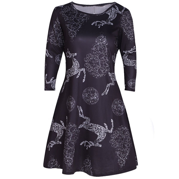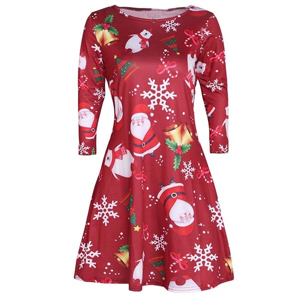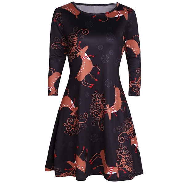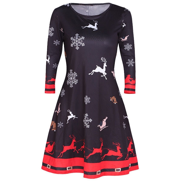 Hey,girls,you can invite this printed dress to get prepared for the coming Christmas Day!