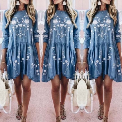 into this dress. Finished with long sleeve,round neck and a loose silhouette,this dress definitely knows how