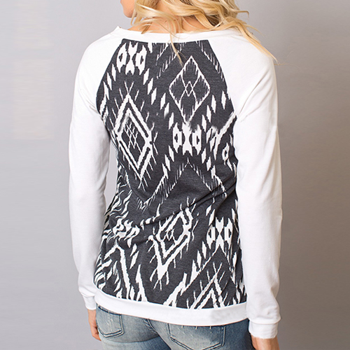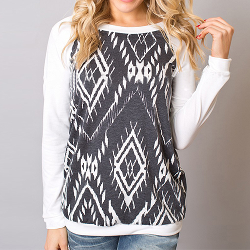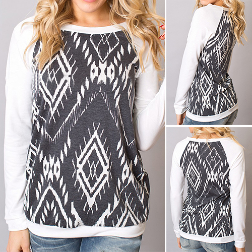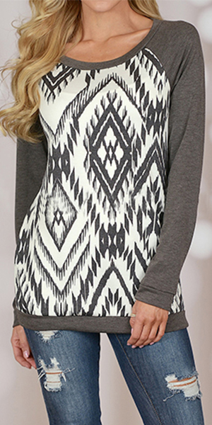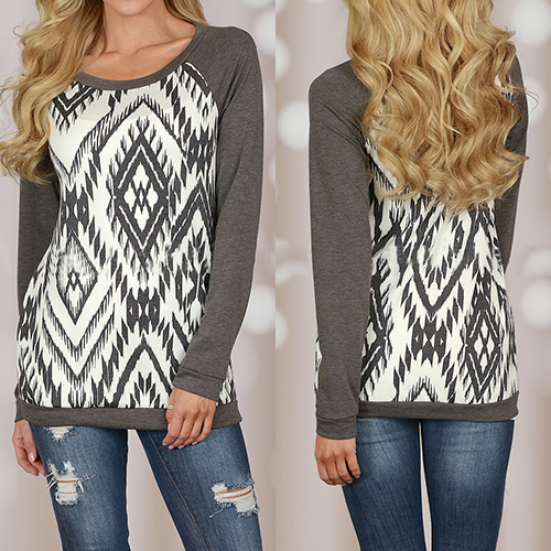 you comfy all day. Features chic printed pattern,with long sleeve and round