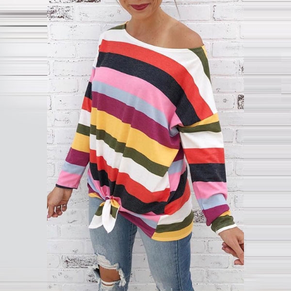 You can enjoy the cozy and style which is offered by this t-shirt. The rainbow striped design makes this