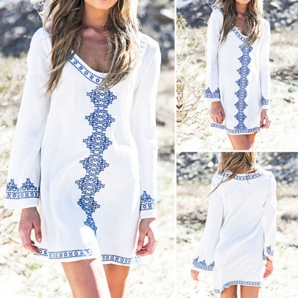with long sleeve,round neck and a relaxed-fit silhouette,this dress can give you an all-day comfy. And its printed details