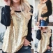 Finished with long sleeve and round neck design,the sequin spliced design makes this piece
