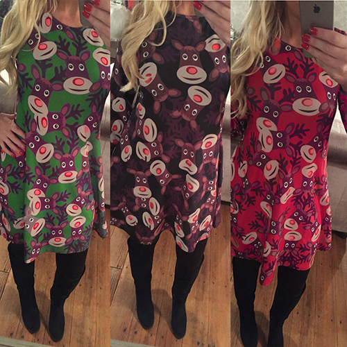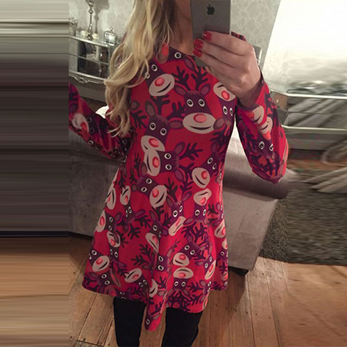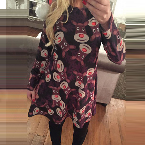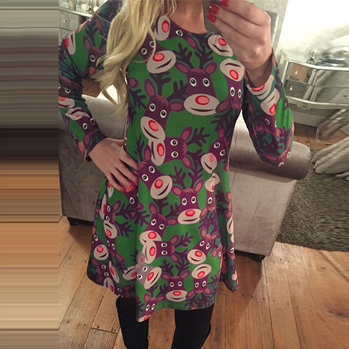 Update your wardrobe with this dress. It features chic printed pattern,with long sleeve,round neck