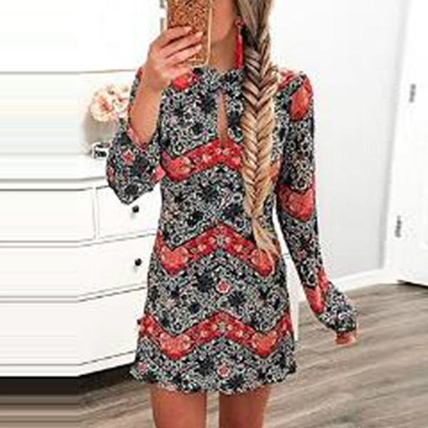 On some rushed mornings,this easy-to-wear dress would be your best choice. Its colorful printed pattern design makes