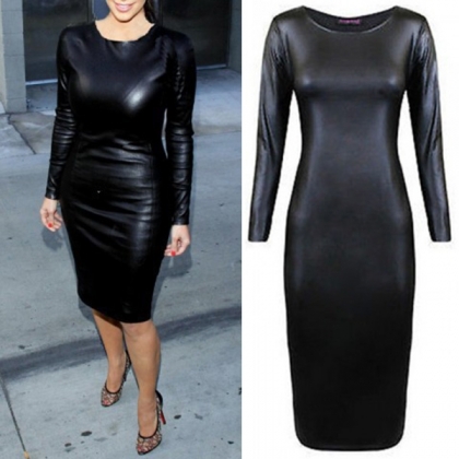 This PU Leather dress comes with a mysterious and flattering black tone,finished with long sleeve,