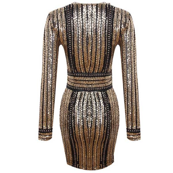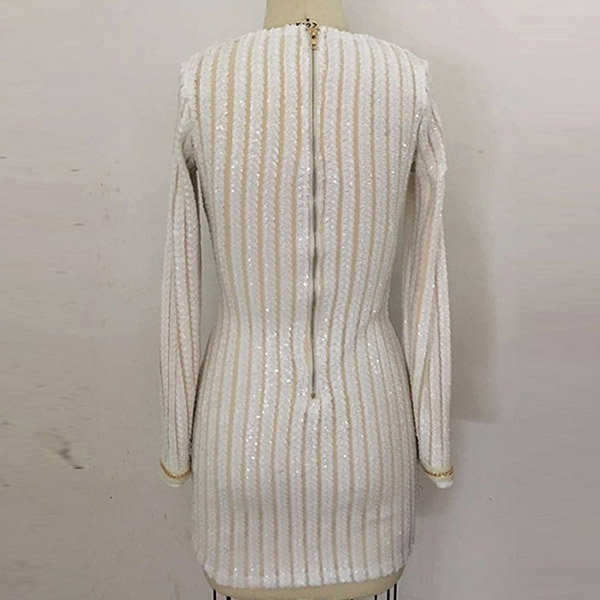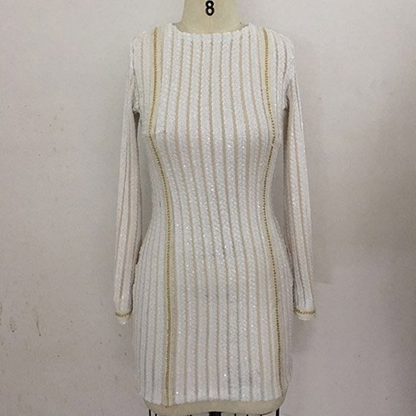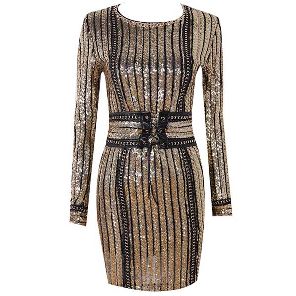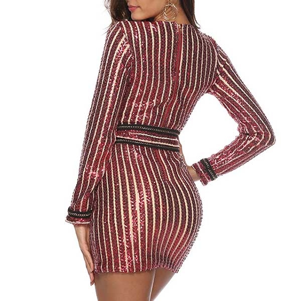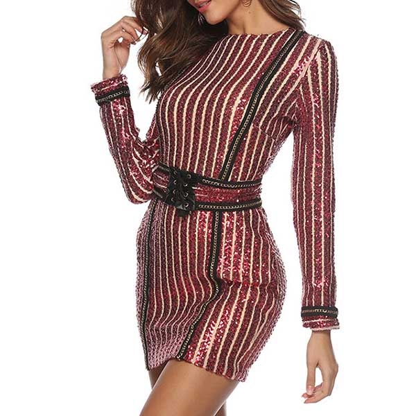 gatherings. This sequin dress is finished with long sleeve,round neck and a fit silhouette,which can showcase