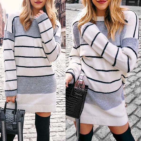 In the spring,autumn and winter,this knit dress can be your wise choice. Striped element design makes