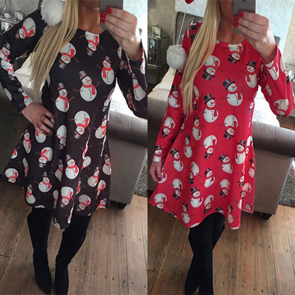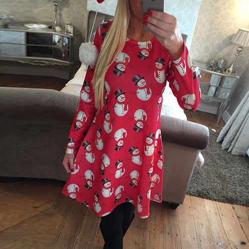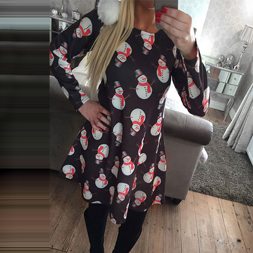 Welcome Christmas arrival with this dress! It features Christmas snowman printed pattern,