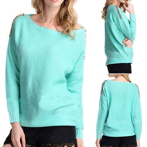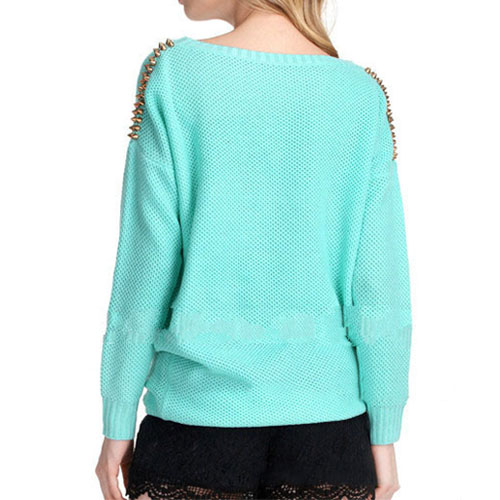 and round neck design,and decorated rivets,making it look more chic. A wardrobe essential in chilly days.