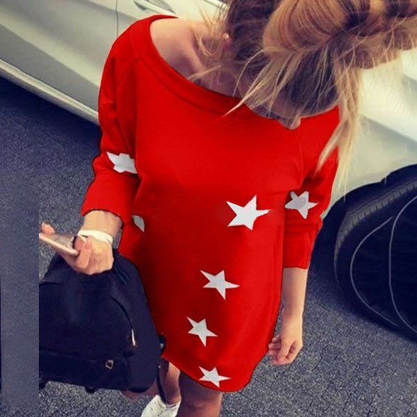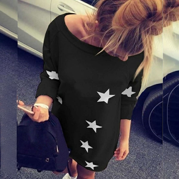 with long sleeve,round neck and star printed pattern,this piece definitely knows how to offer you a cozy,casual and