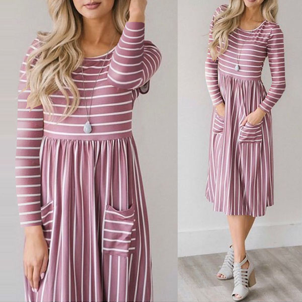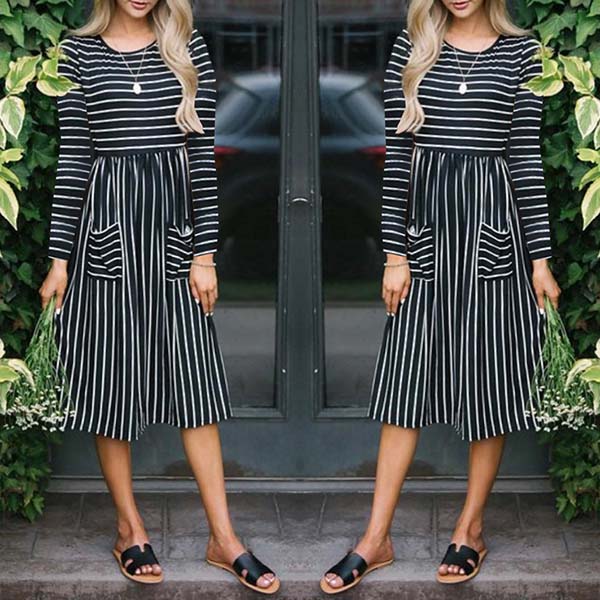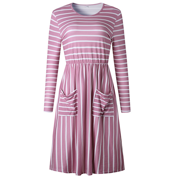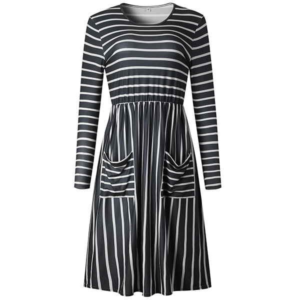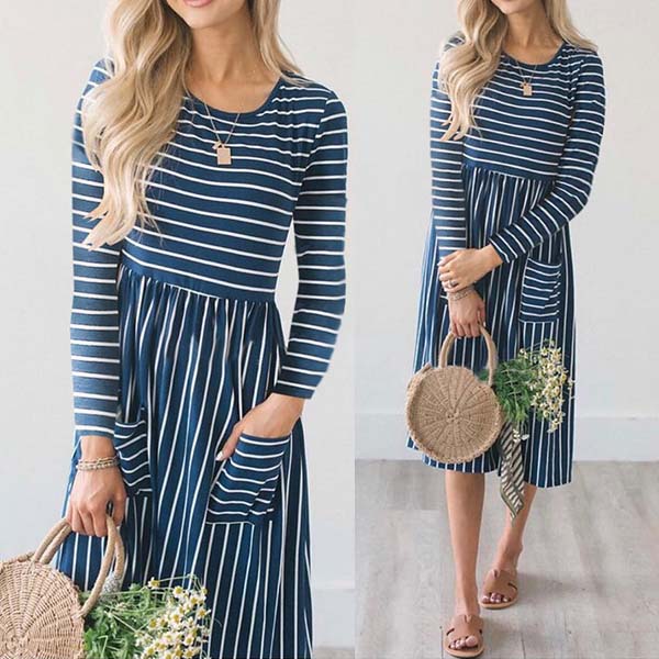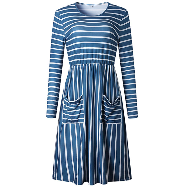 This striped dress is finished with long sleeve,round neck and high waist design,which is perfect fit for