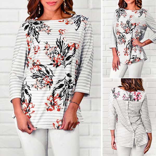 Combines of cozy and style,this t-shirt is worth to have a place in your wardrobe. The striped and printed
