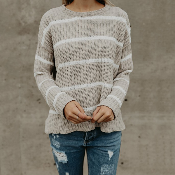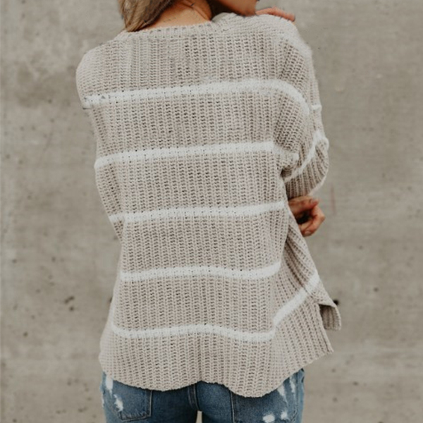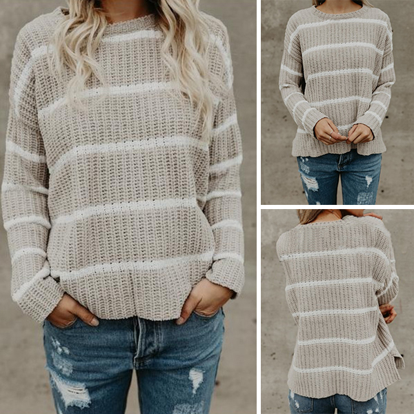 In these chilly days,sweater is a must-have item. So how about this piece? Striped style,finished with long sleeve,