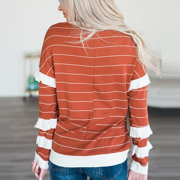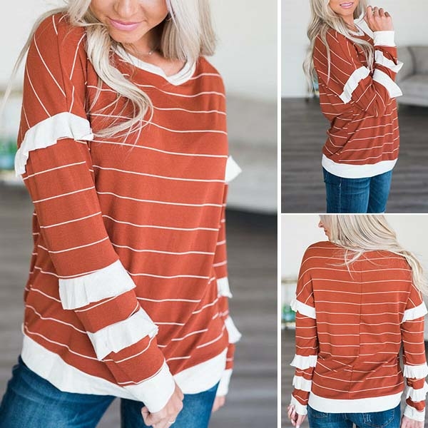 This t-shirt is designed with striped element,stylish and popular. Finished with long sleeve and round neck