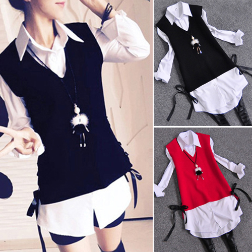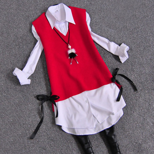 hem shirt and a v-neck vest,this two-piece set definitely will give you a casual yet stylish style. So why not add it to your wardrobe ensemble?