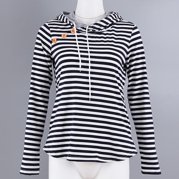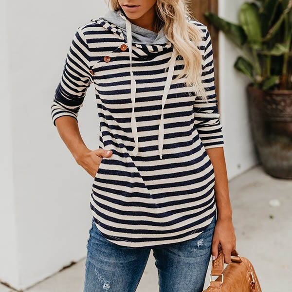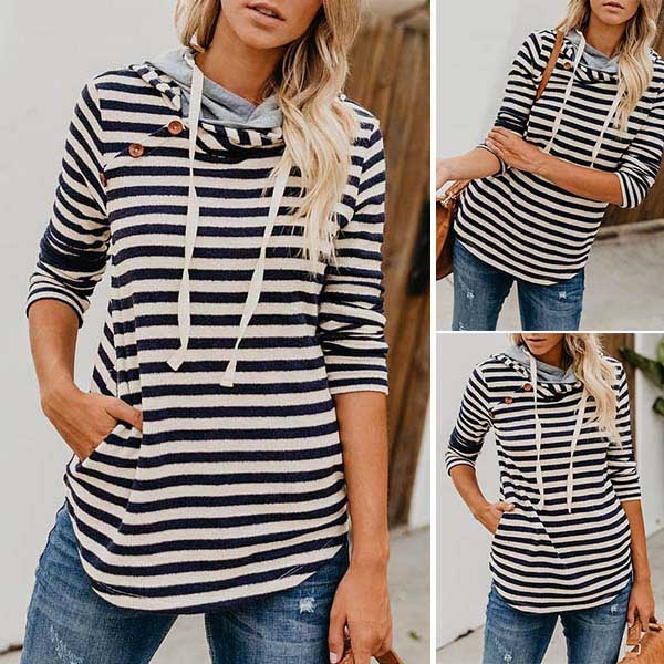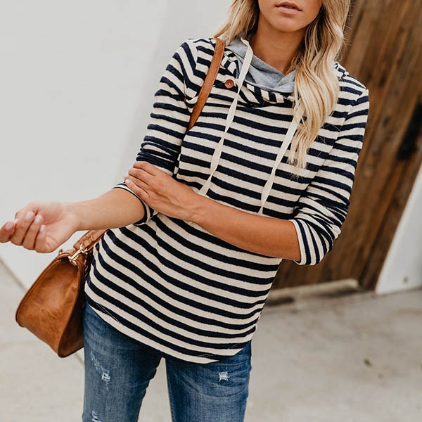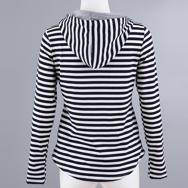 to look effortlessly in style. Designed with striped element,finished with long sleeve,hooded silhouette