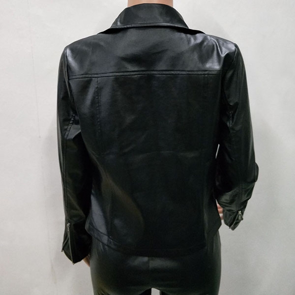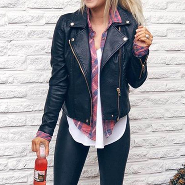 Make your wardrobe more complete by adding this PU leather jacket. Comes with a classic yet