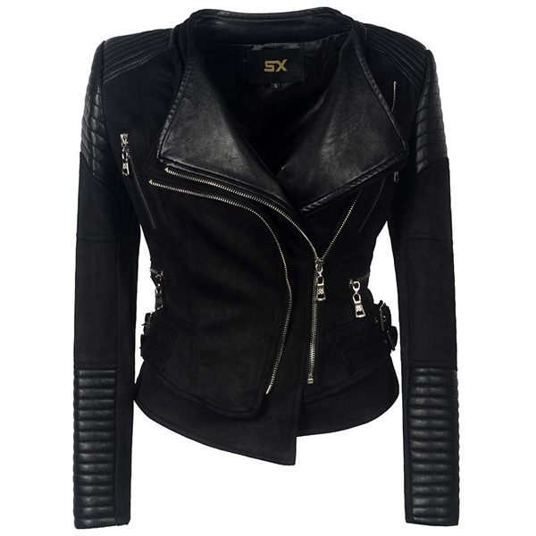 Add this PU leather jacket to complete your wardrobe. The fit silhouette design also can sketch out your slender