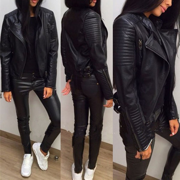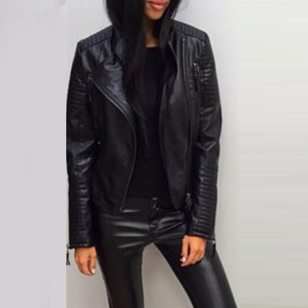 Make your wardrobe more complete by adding this PU leather jacket. It features a classic yet stylish