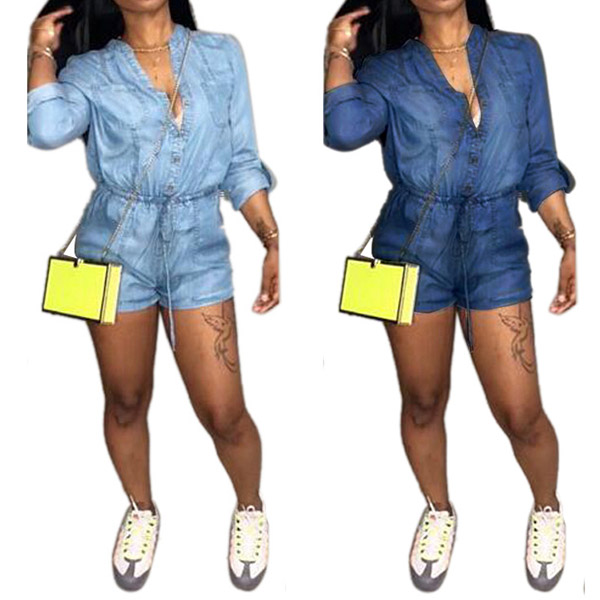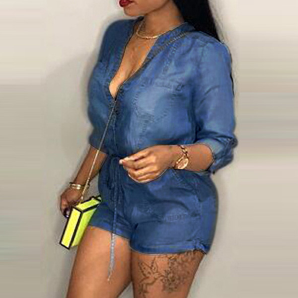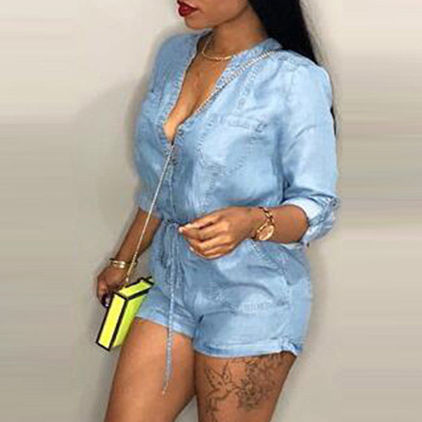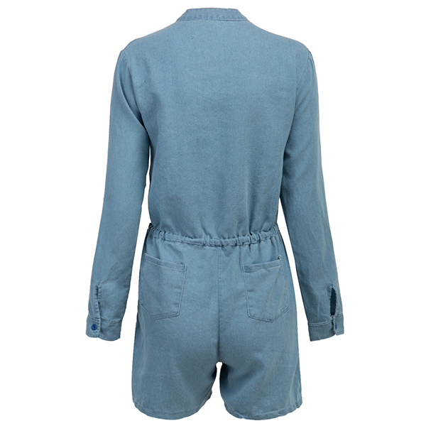 Hey,girls,it is a good chance to update your image with this denim romper! It is finished with long sleeve,