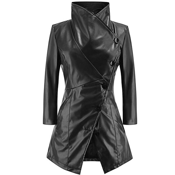 You would have a chic and stylish street look with this PU leather windbreaker coat. Comes with a classic yet