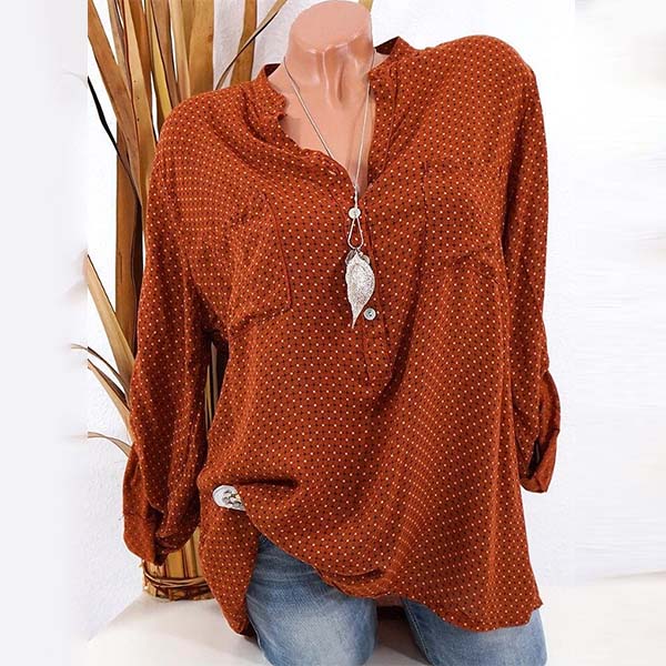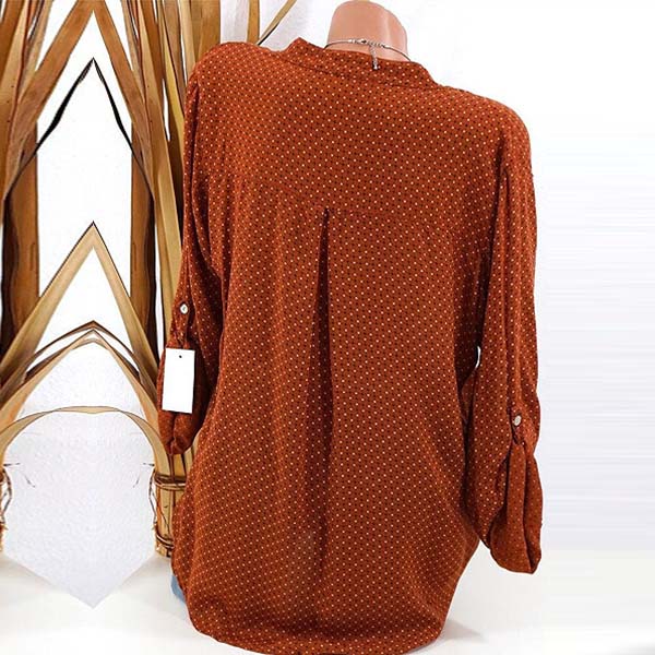 Fashion Long Sleeve Stand Collar Printed Casual Blouse