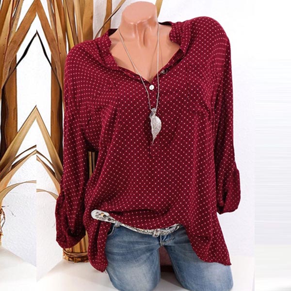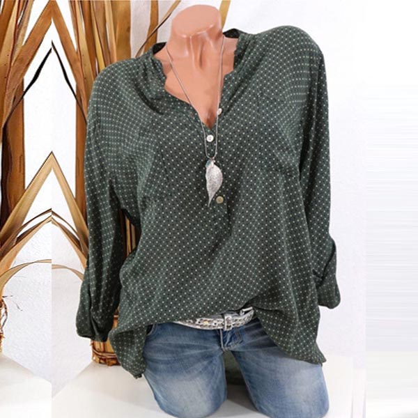 Crafted from soft and breathable fabric,with long sleeve,stand collar and a loose silhouette,this blouse