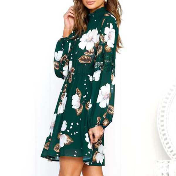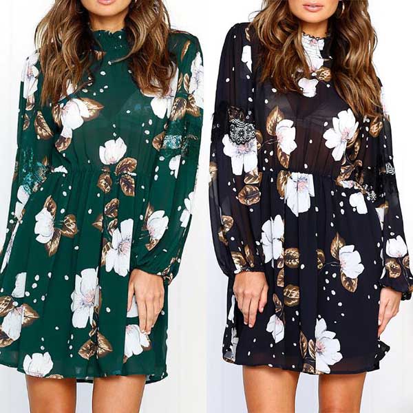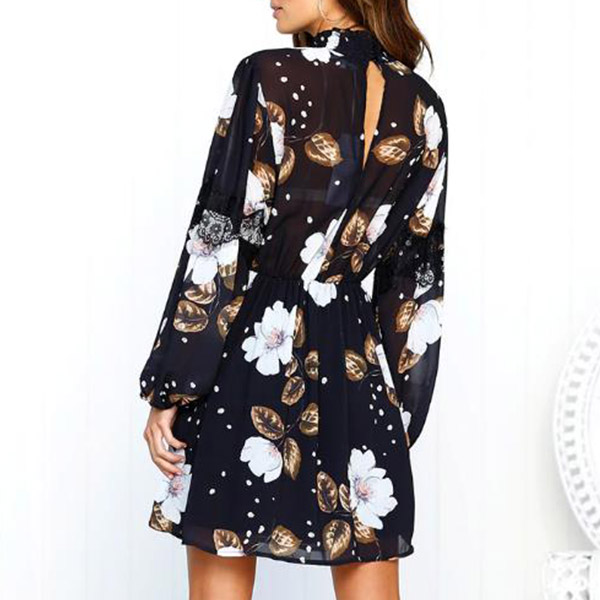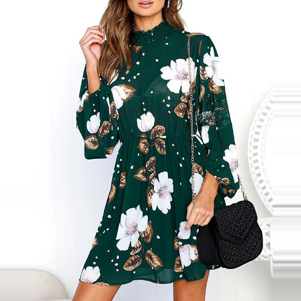 and eye-catching printed pattern,finished with long sleeve and stand collar design,this dress can