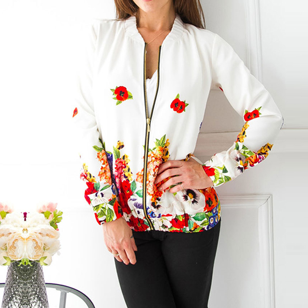 This jacket is a good choice for you when the days get a little cold. The vivid and vibrant floral print design can make your
