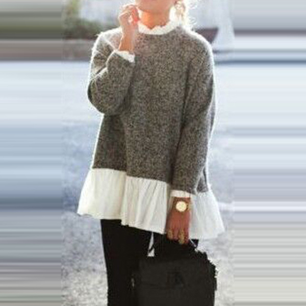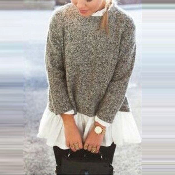 a two-piece set,but actually not,it is just a shirt-style sweater. Its stand collar and ruffle hem design is the highlight. So it is