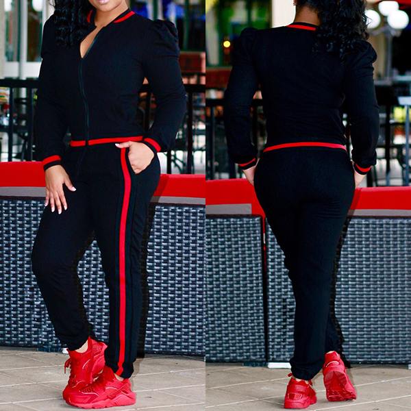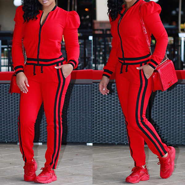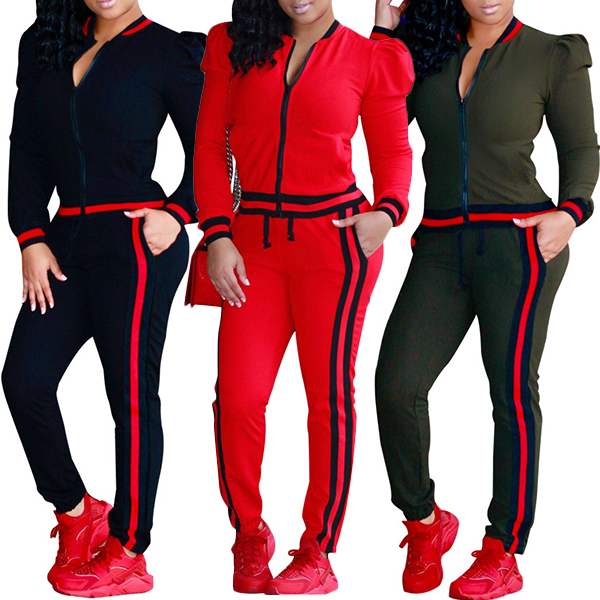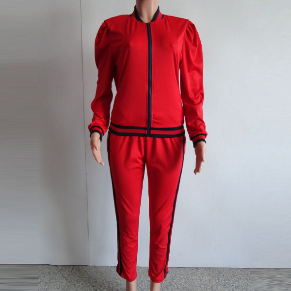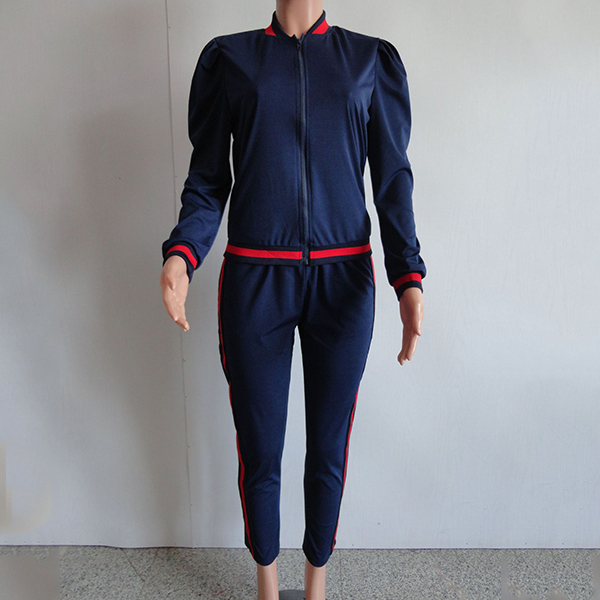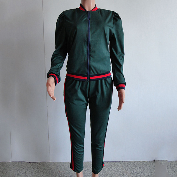 It consists of a long sleeve stand collar sweatshirt coat and a sports pants,crafted from soft and breathable fabric,