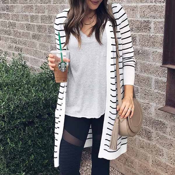 this long-sleeved cardigan can do no wrong. Striped element design makes it look so stylish