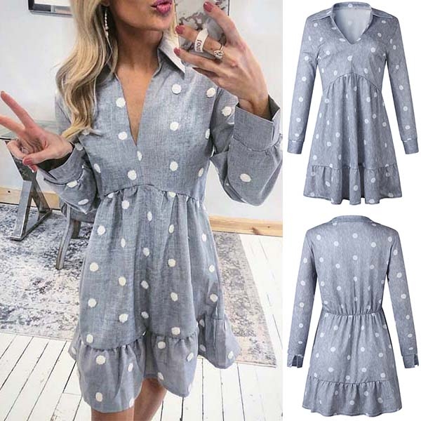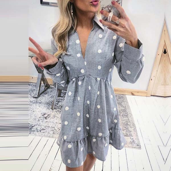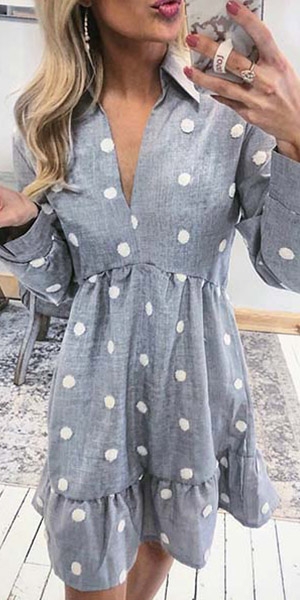 Wanna look stylish yet playful? Then we suggest you slipping into this dress. Designed with dots printed details,with long sleeve and v-v-neck design,