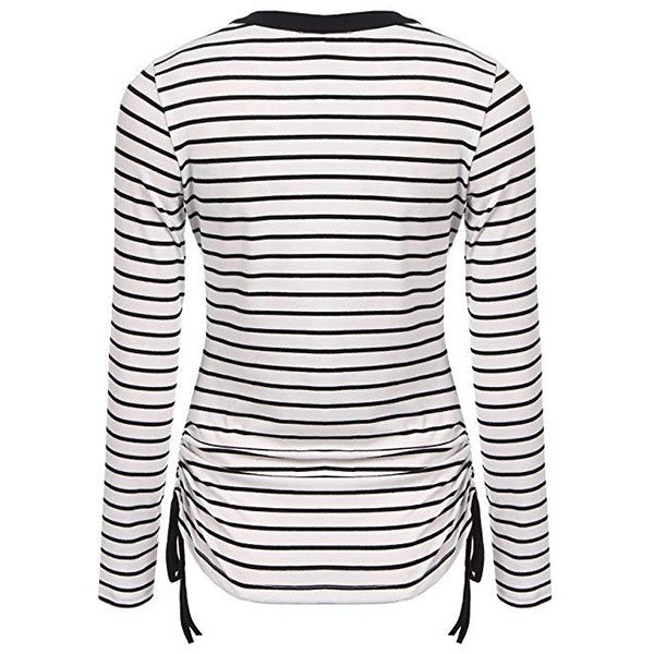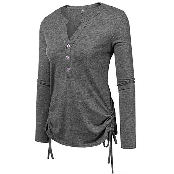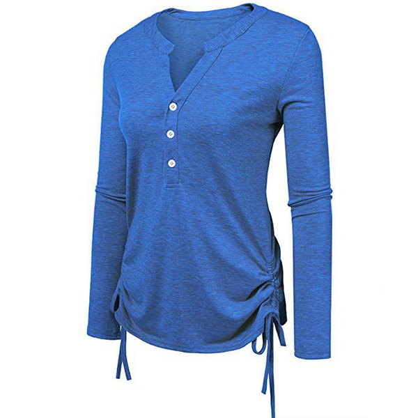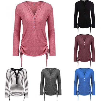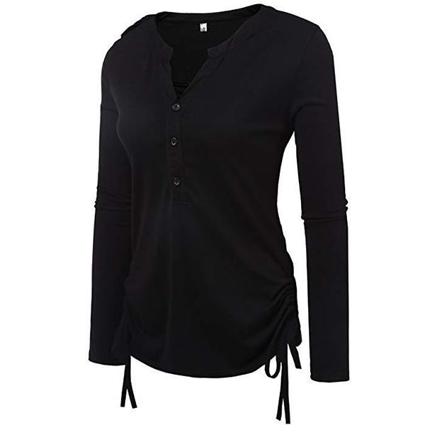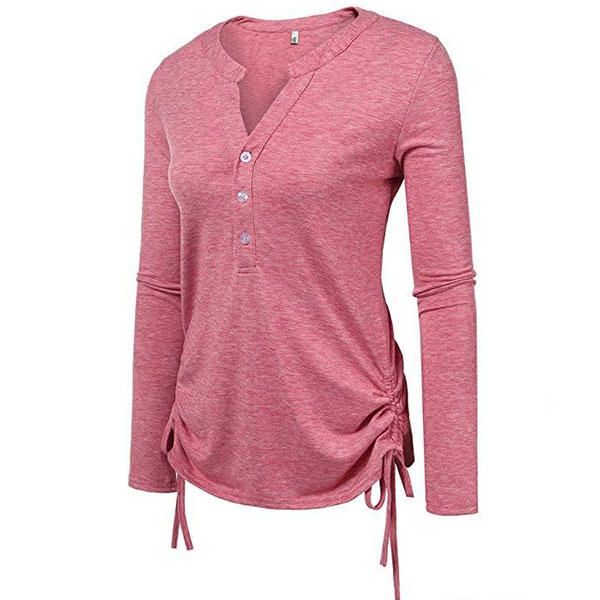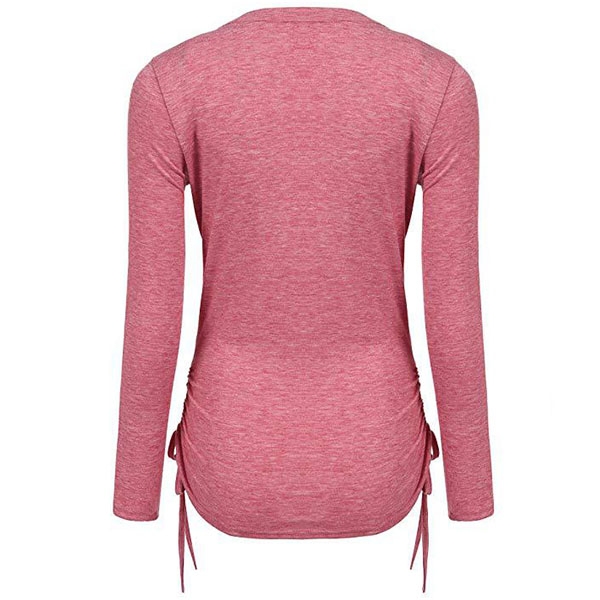 the drawstring hem design will make this piece look more attractive. You can stay cozy and stylish in this t-shirt.