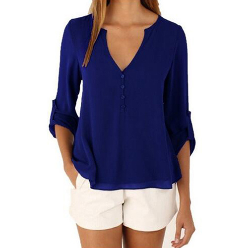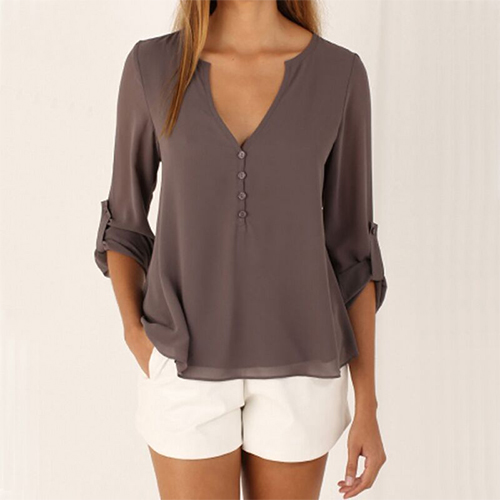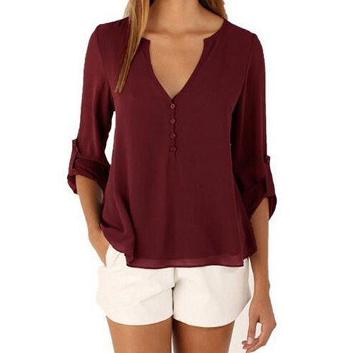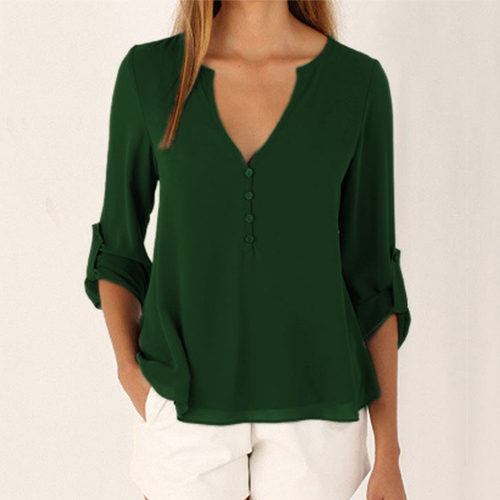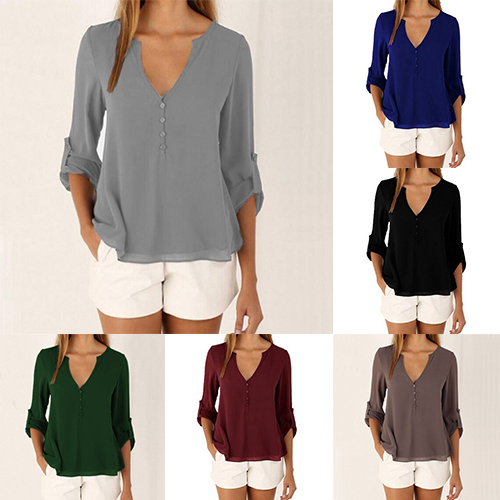 This chiffon blouse is the perfect combination of casual,cozy,stylish and all-match. Solid color styledesigned with long sleeve,v-neck