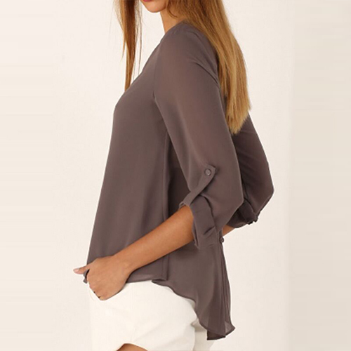 and a high-low hem,chic yet stylish. Backside with wrinkled design makes it .more attractive and distinctive. This blouse is perfect for matching with your any bottoms.
