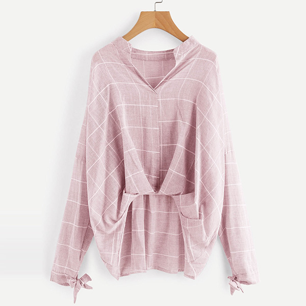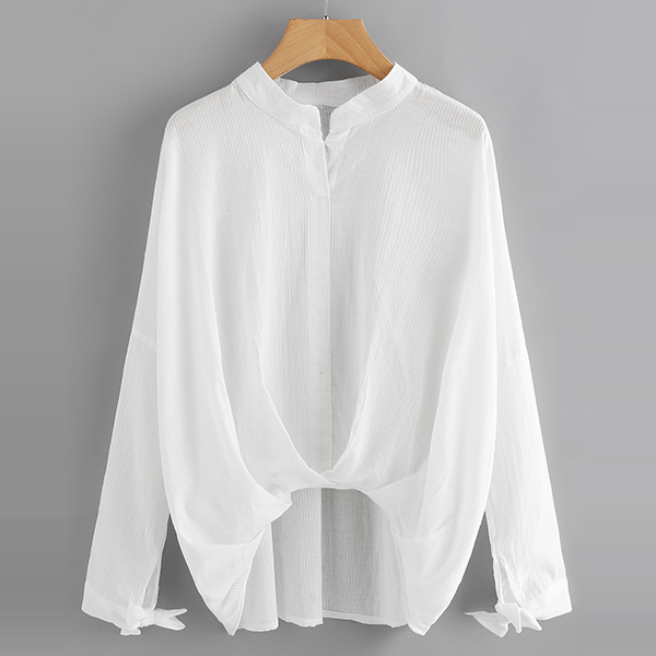 This blouse which is designed in a different style can arouse your interest. It is styled with long sleeve,v-neck,high-low