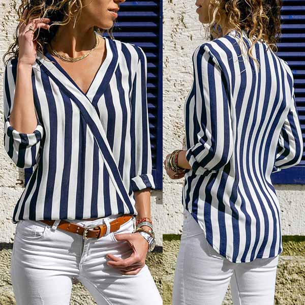 the weekend. Striped element design makes it look so stylish and popular,while the v-neck and