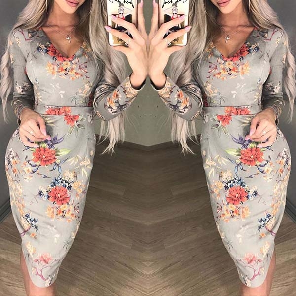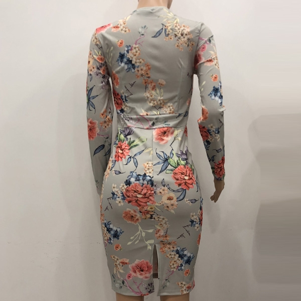 some attention. Boasts vibrant floral print details,finished with long sleeve,v-neck,high waist and a fit