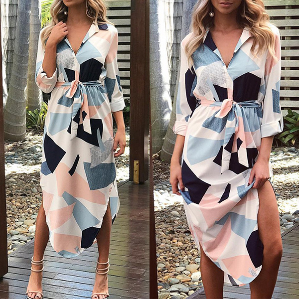 dress. The color blocks design gives you some modern and stylish charm,while the v-neck and irregular hem design