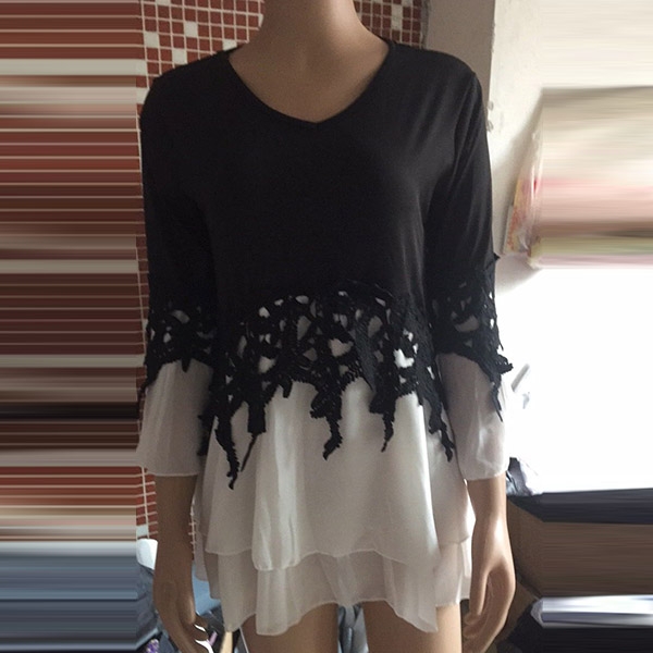 Inject a dash of comfort and style to your daily look with this t-shirt. The chiffon and lace spliced design