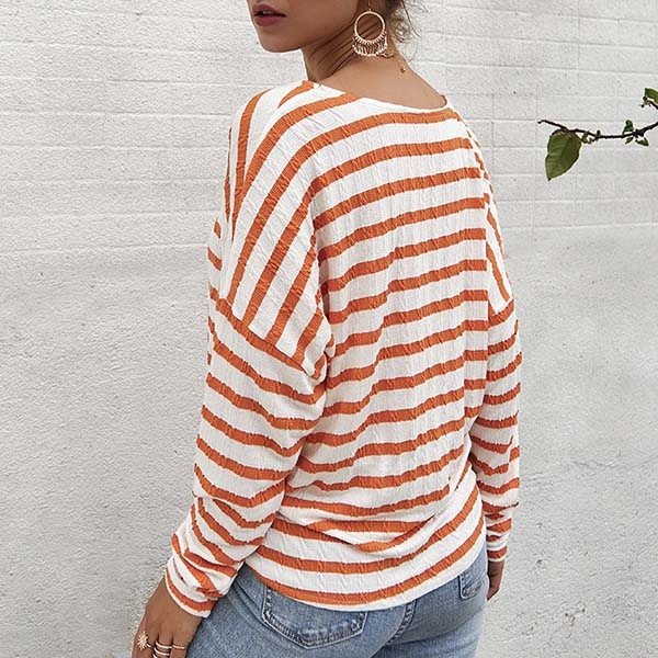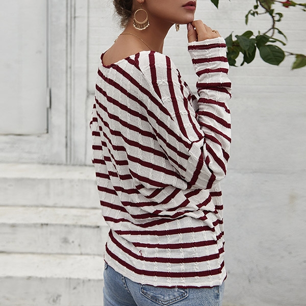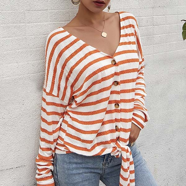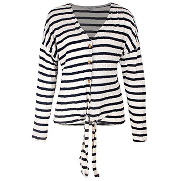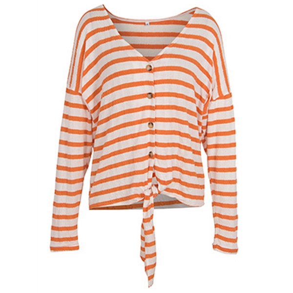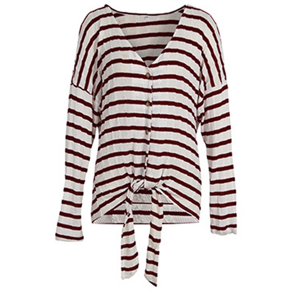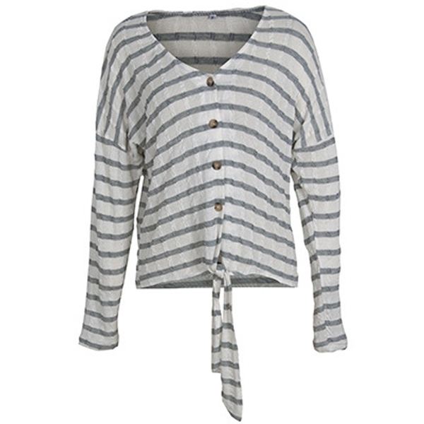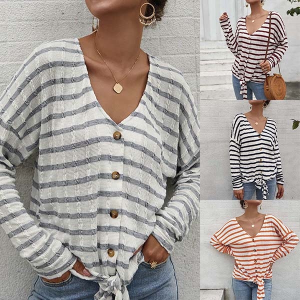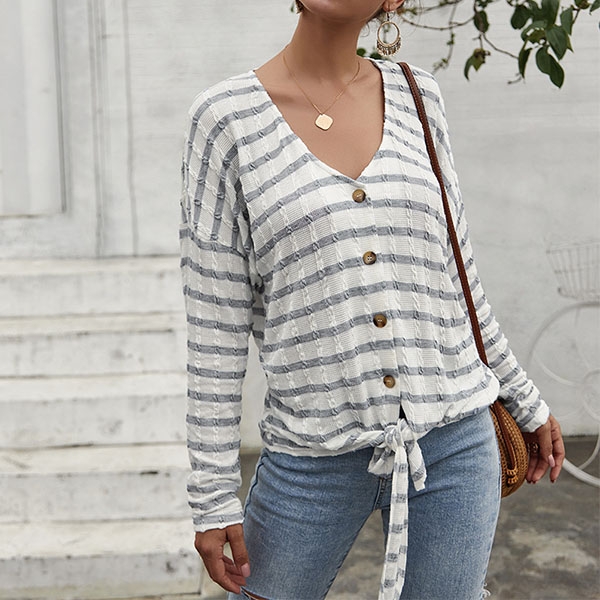 you warm. Designed with striped element,with long sleeve,v-neck and lace-up hem design,