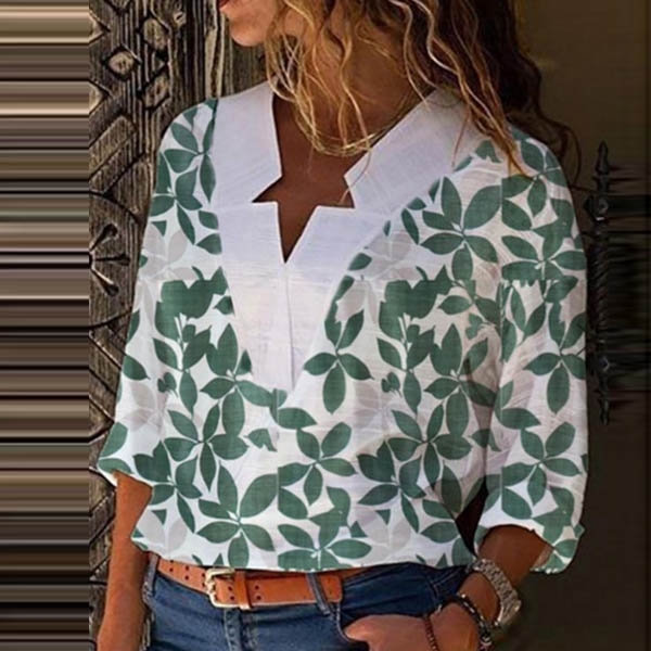 What makes this blouse look so eye-catching is thanks to the chic printed details. And the unique v-neck
