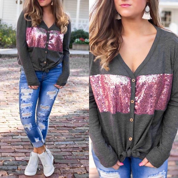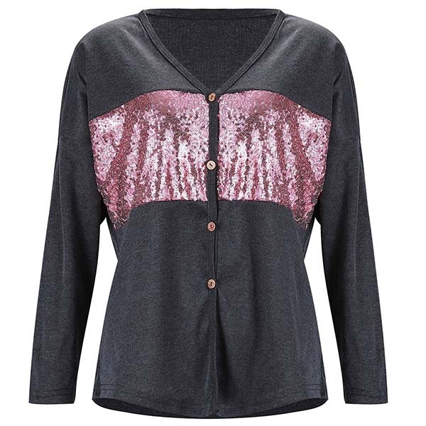 long sleeve and v-neck design,the sequin spliced design will make this piece look more attractive.