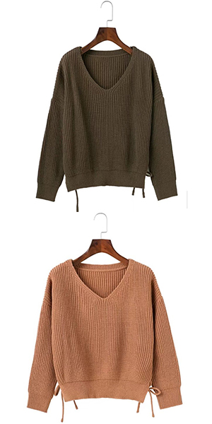 different? We think it owes to the lace-up design on both side. Moreover,this sweater allows to be matched with different