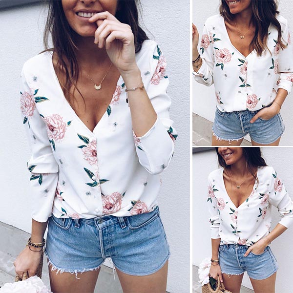 accompanied with long sleeve,v-neck and single-breasted design,this blouse allows to be matched with