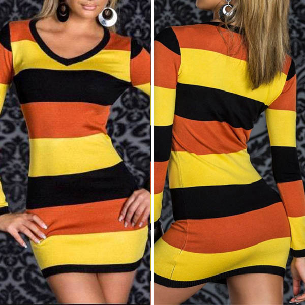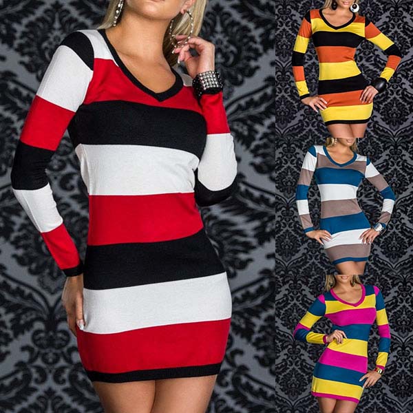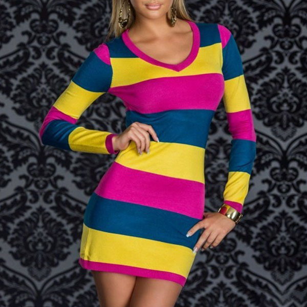Contrast color striped design makes it look so eye-catching,while the v-neck design can lend
